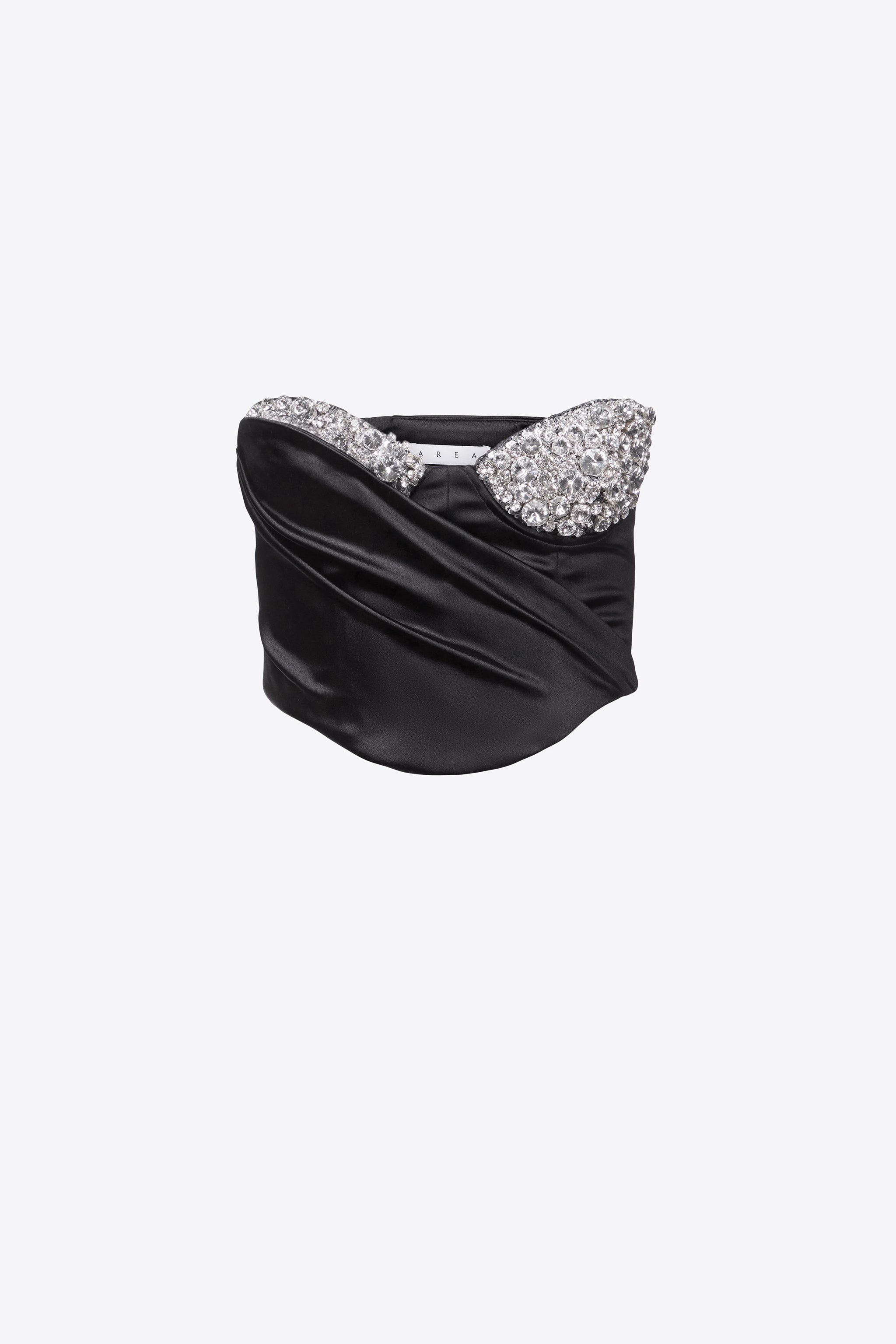 Lycra bustier top featuring crystal embroidered cups and back zipper. Available in Black & Ice Blue. - 67% Acetate, 29% Polyamide, 4% Elastane; Lining: 78% Polyamide, 22% Elastane - Model is 5'10 and wears a size US 2 - Dry clean only