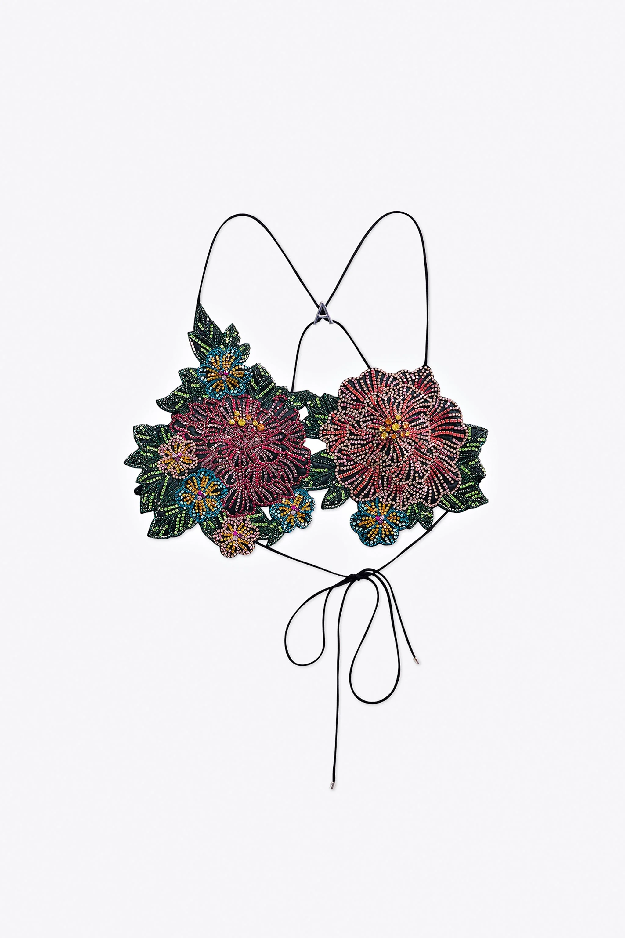 EMBROIDERED CRYSTAL FLOWER BRA TOP