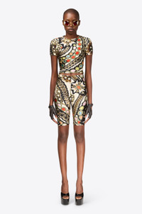 Lycra cropped t-shirt featuring gemstone chain print. Available in Multi. - 80% Polyamide, 20% Elastane - Dry Clean Only - Model is 5'11.5" and wears a size S