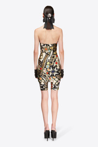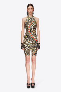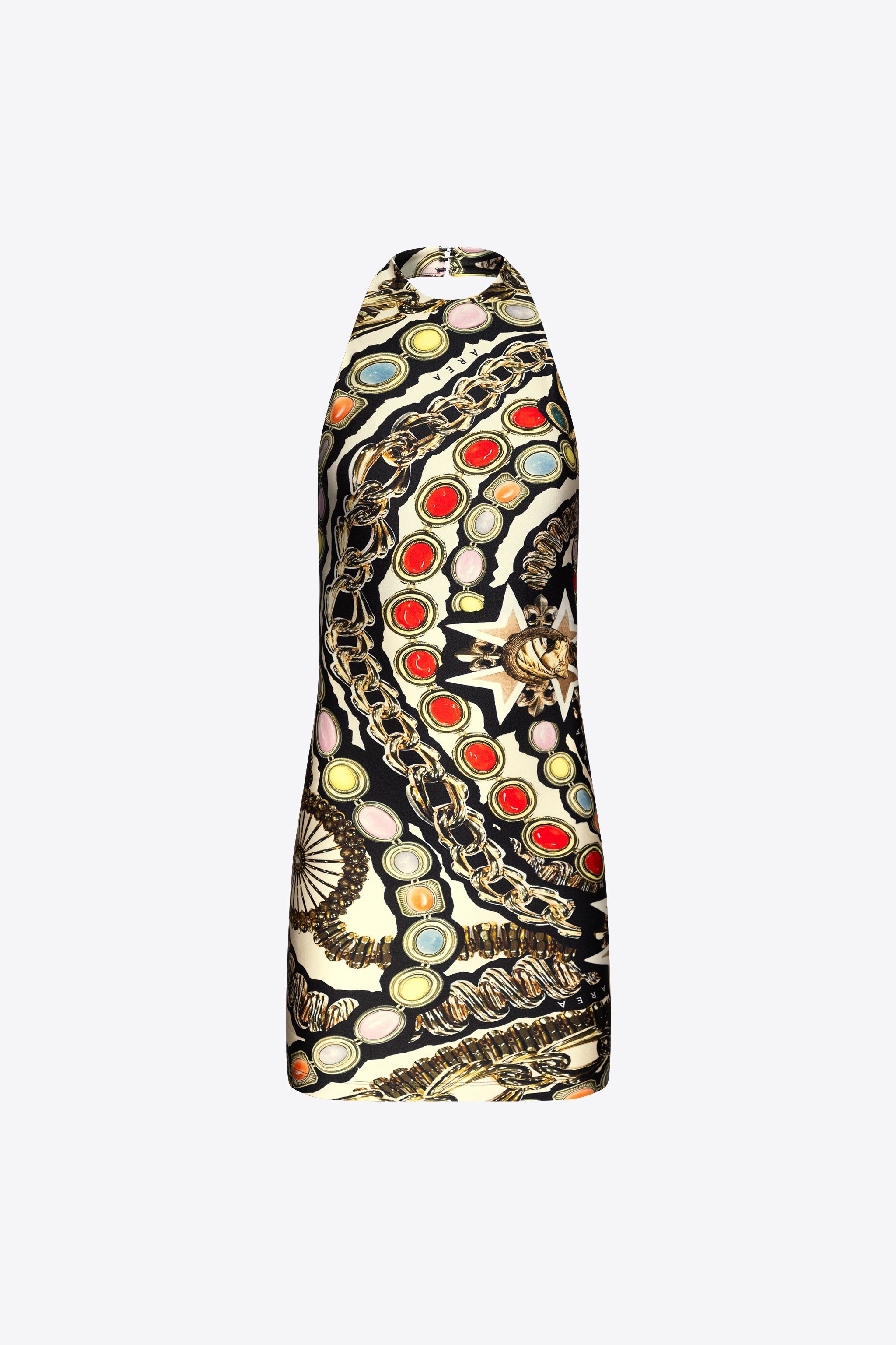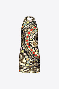 GEMSTONE CHAIN PRINTED HALTER MINI DRESS