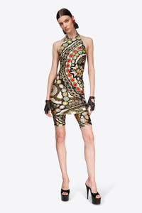 Lycra halter mini dress featuring gemstone chain print. Available in Multi. - 80% Polyamide, 20% Elastane - Dry Clean Only - Model is 5'11.5" and wears a size S