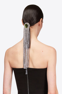 Crystal gemstone ponytail holder with elastic hairband closure. Available in Green. - 327 mm - Stones: 100% Glass, Metal: 100%Brass - To protect and assure the longevity of your jewelry and accessories, handle delicately when dressing. Do not wear while swimming, bathing, applying perfumes, lotions or hair products. To clean your pieces use a soft cloth and gently wipe the surface.