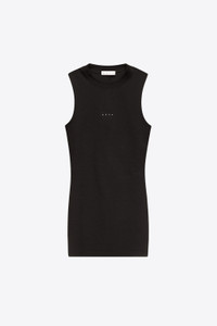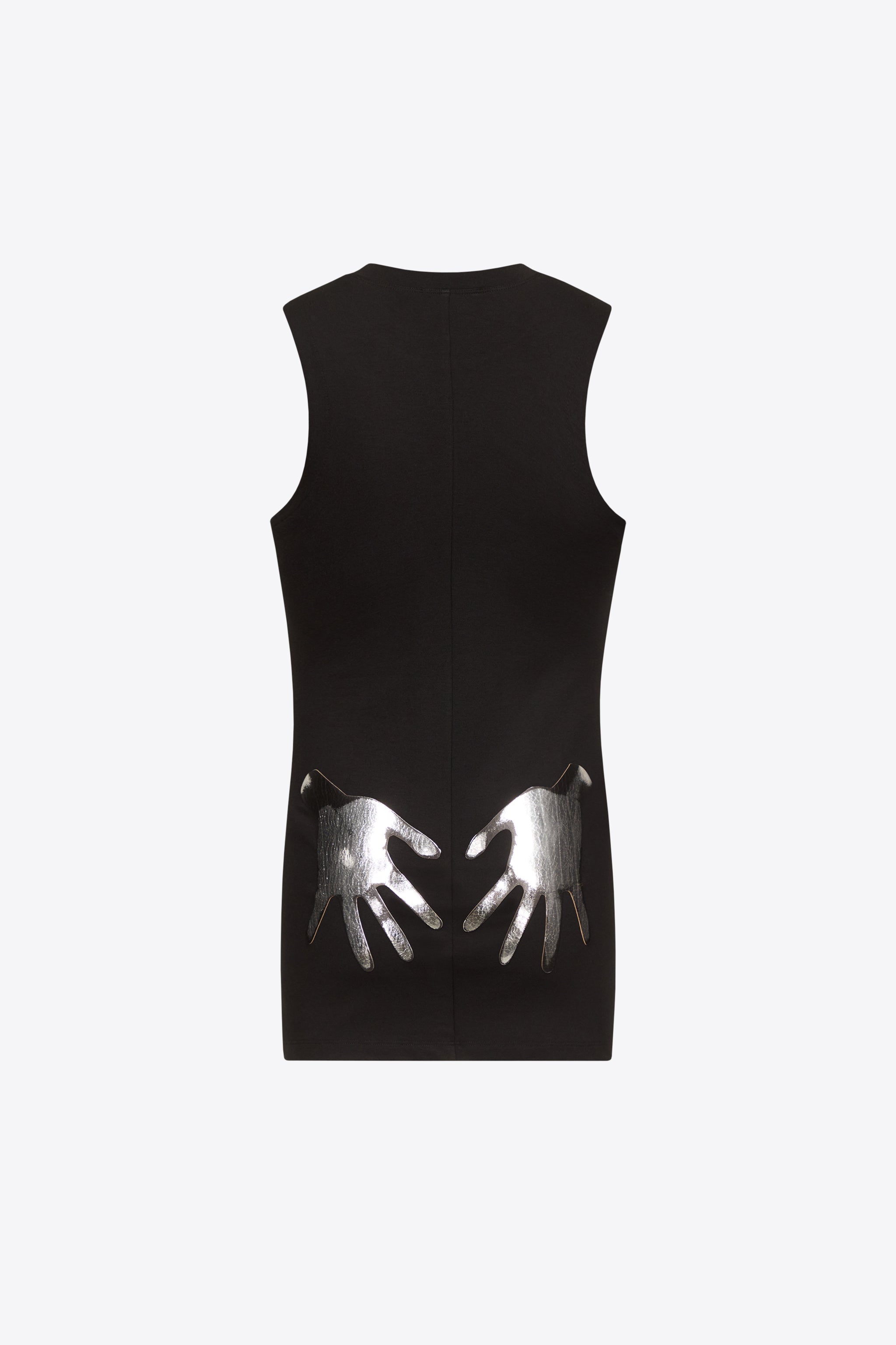 Compact ponte jersey sleeveless mini dress. Features faux leather patch handprint detail at rear and 'AREA' logo at center front. Available in Black. - Made in Italy - 68% Viscose, 27% Nylon, 5% Elastane - Dry Clean Only
