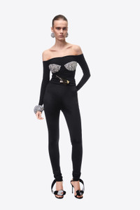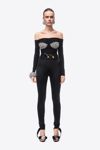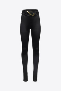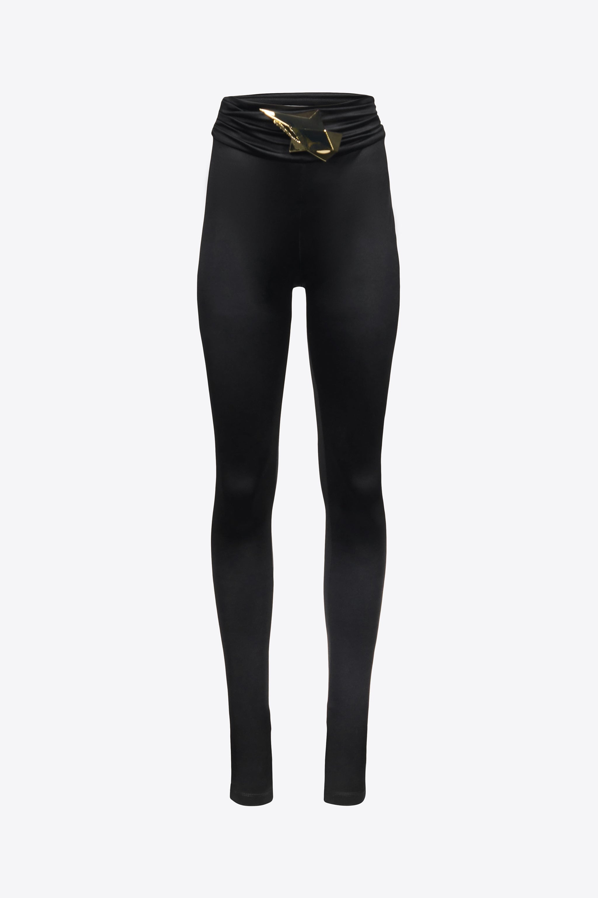 Lycra high waisted leggings with ruched waistband and gold star stud button. Available in Black & Ice Blue. - Runway - 67% Acetate, 29% Polyamide, 4% Elastane; Lining: 78% Polyamide, 22% Elastane - Model is 5'10 and wears a size US 2 - Dry clean only