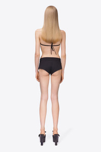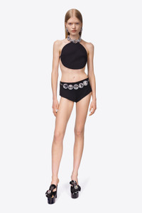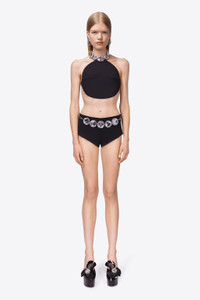 Wool suiting halter top featuring jumbo crystal embroidery at neck. Tie closure at center back with adjustable chain at neck. Available in Black. - 100% Wool - Dry Clean Only - Model is 5'10" and wears a size US 2