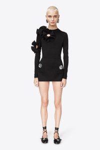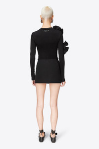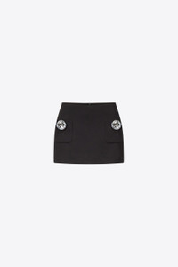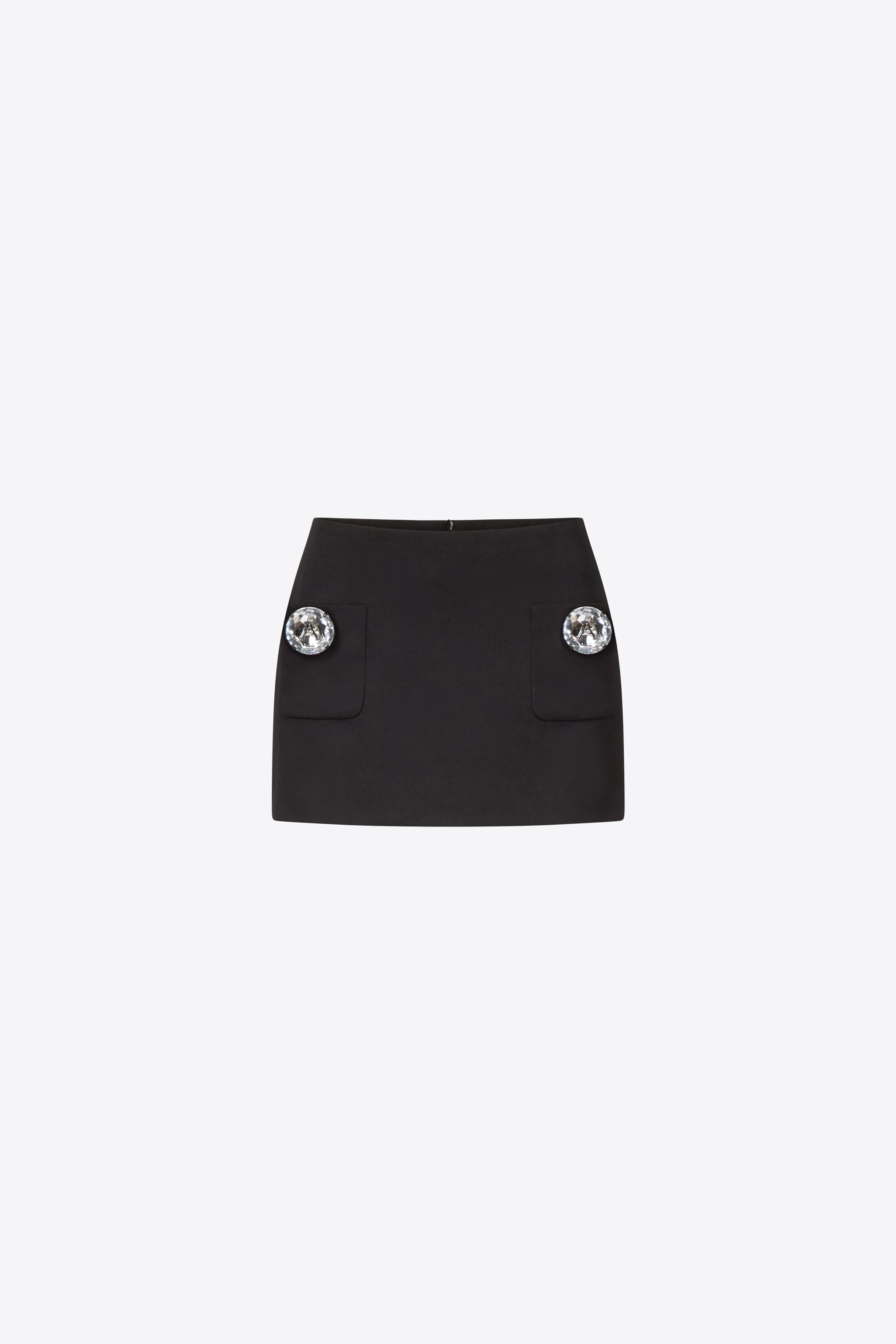 Wool suiting mini skirt with jumbo crystal pocket details. Invisible zip closure at center back. Available in Black. - 100% Wool - Dry Clean Only - Model is 5'9" and wears a size US 2