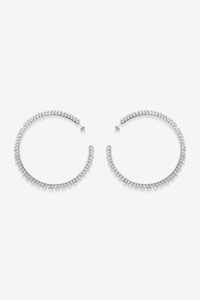 Large crystal cluster hoop. Features post back closure. Available in Clear Crystal/Silver. - Metal: 100% Brass, Stone:100% Glass, Post: 100% Stainless Steel - To protect and assure the longevity of your jewelry and accessories, handle delicately when dressing. Do not wear while swimming, bathing, applying perfumes, lotions or hair products. To clean your pieces use a soft cloth and gently wipe the surface.