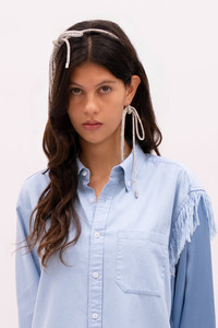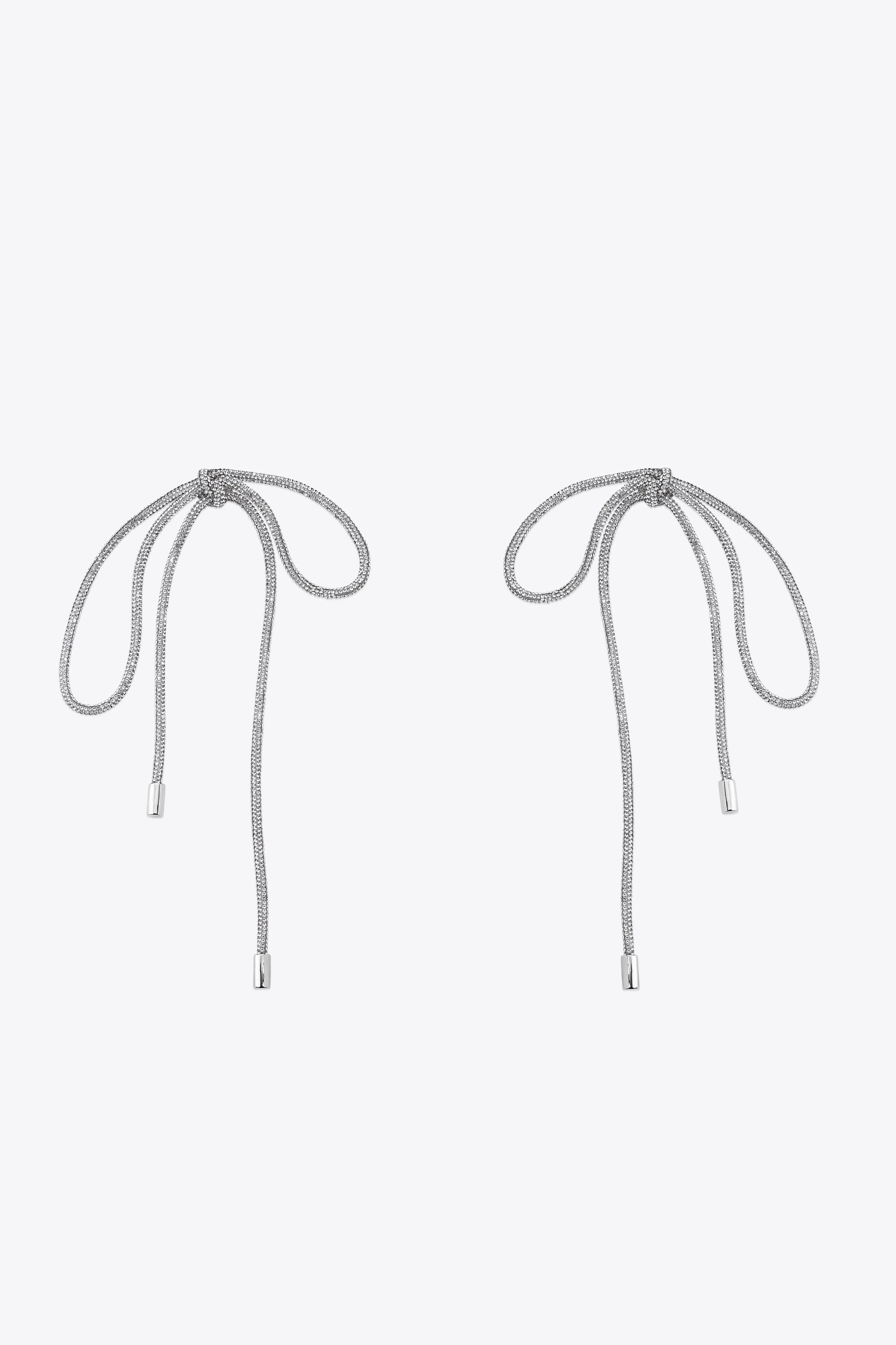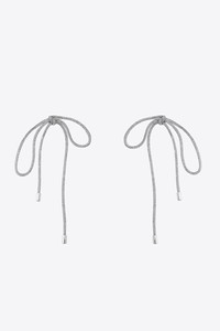 Long crystal knot earrings with post back closure. Available in Clear Crystal/ Silver. - 100% Brass, 100% Glass, 100% Stainless Steel, 100% Acrylic, 100% Cotton - 180mm length - To protect and assure the longevity of your jewelry and accessories, handle delicately when dressing. Do not wear while swimming, bathing, applying perfumes, lotions or hair products. To clean your pieces use a soft cloth and gently wipe the surface.