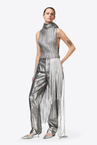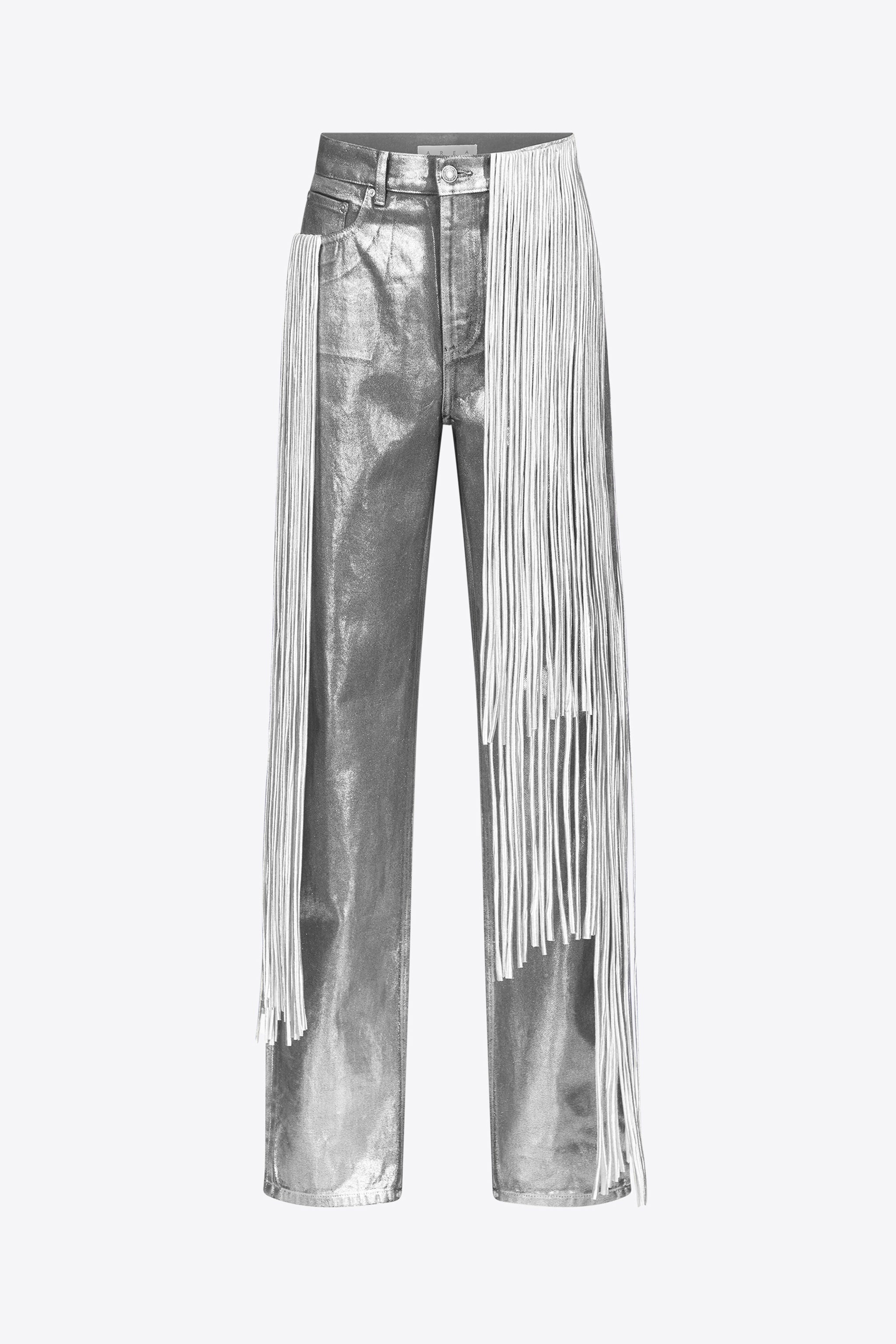 METALLIC FRINGE STRAIGHT LEG JEAN