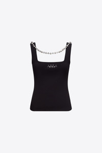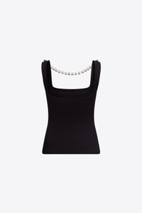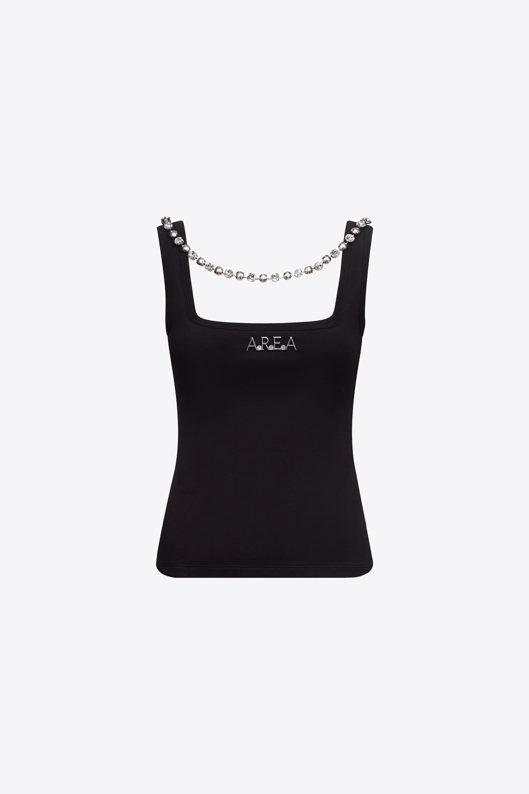 Cotton jersey tank top with removable crystal necklace detail and 'AREA' crystal name plate at center front. Available in Black and Whipped White. - Made in Italy - 94% Cotton, 6% Elastan - Dry Clean Only - Model is 5'9" and wears a size S