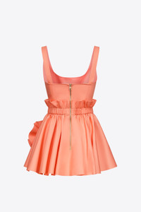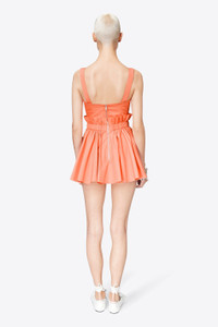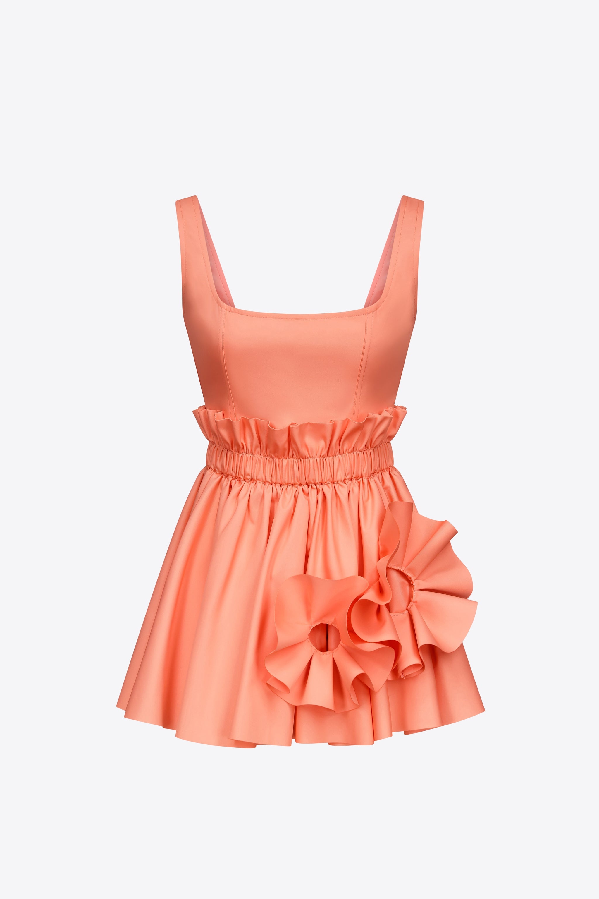 Nylon tank mini dress with ruffle flower cutout details and 'AREA' crystal nameplate at center front. adjustable straps and exposed zip closure at center back. Available in Sweet Salmon. - 100% Polyester - Dry Clean Only - Model is 5'10" and wears a size US 2