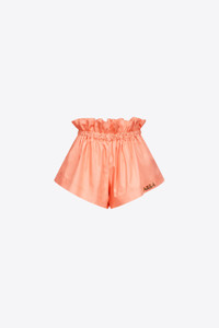 Nylon high-waisted track short featuring 'AREA' crystal nameplate at hem. Available in Sweet Salmon. - 100% Polyester - Dry Clean Only - Model is 5'10" and wears a size S