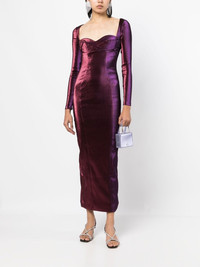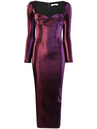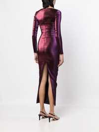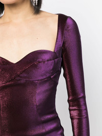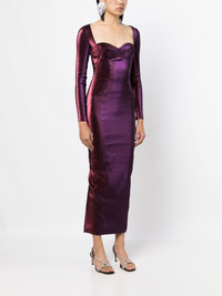 satin long-sleeved maxi dress dark purple satin finish sweetheart neck long sleeves maxi Imported Composition Cotton 40%, Polyamide 36%, Polyester 19%, Elastane 5% SIZE & FIT Model measurements Height 5 ft 10 in(1.77 m) Bust/Chest 31.49 in(80 cm) Hips 35.43 in(90 cm) Waist 25.19 in(64 cm) FittingInformation This piece fits true to size. We recommend you get your regular size Cut for a close fit Made with a mid-weight stretch fabric Washing instructions Dry Clean Only