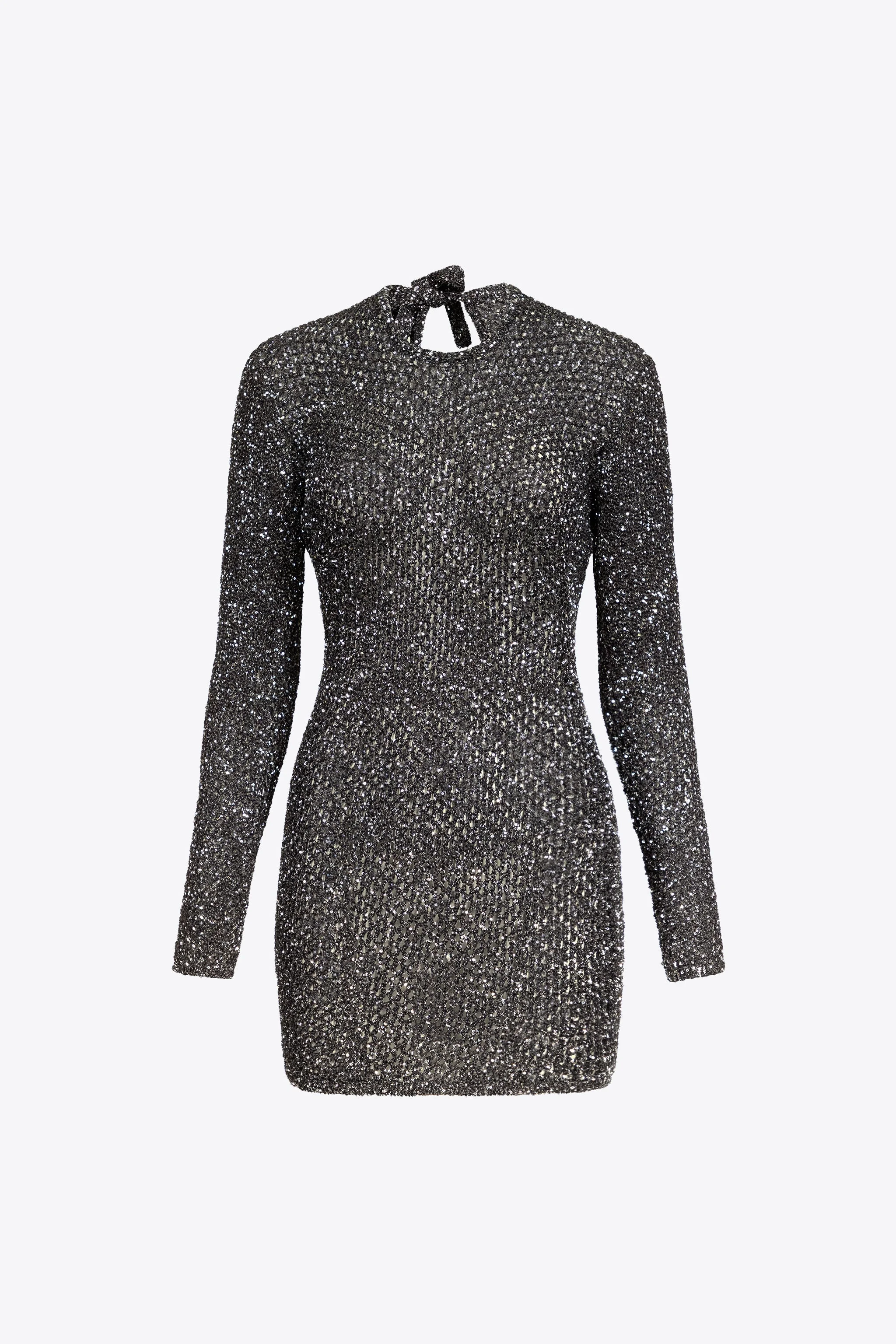 SEQUIN CROCHET LONG SLEEVE MINI DRESS