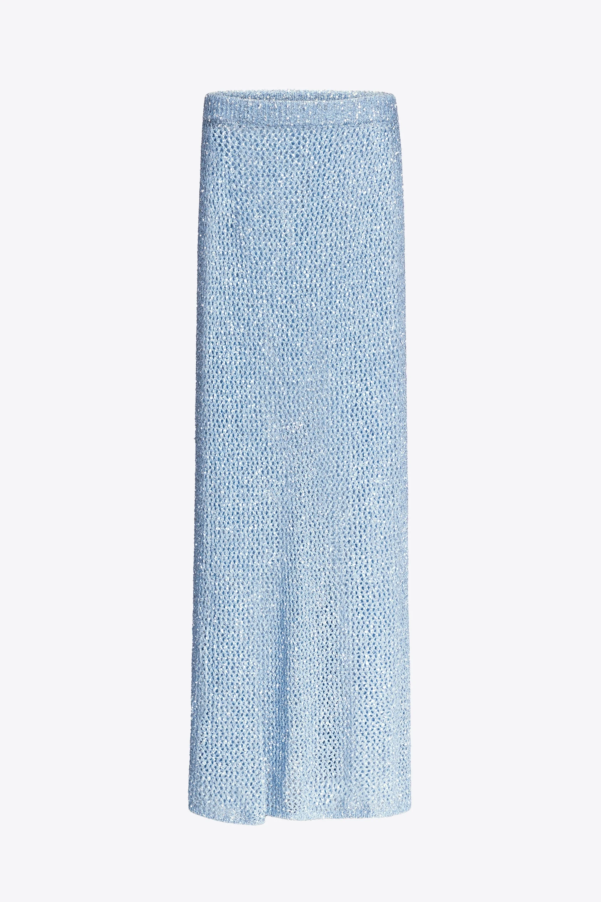 Crochet maxi skirt featuring sequin embellishment all over. Available in Light Blue & Black. - 100% Polyamide - Dry Clean Only - Model is 5'11.5" and wears a size S