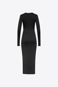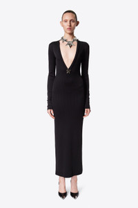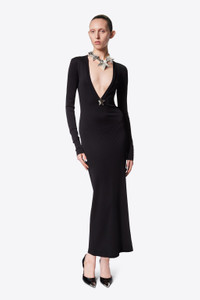 Ribbed long sleeve gown featuring star stud embellishment and plunging v-neck. Available in Black. - 97% Viscose, 3% Elastane - Dry Clean Only - Model is 5'11" and wears a size S