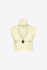 Ribbed sleeveless top featuring star stud embellishment. Available in Cream Yellow and Black. - 97% Viscose, 3% Elastane - Dry Clean Only - Model is 5'11" and wears a size S
