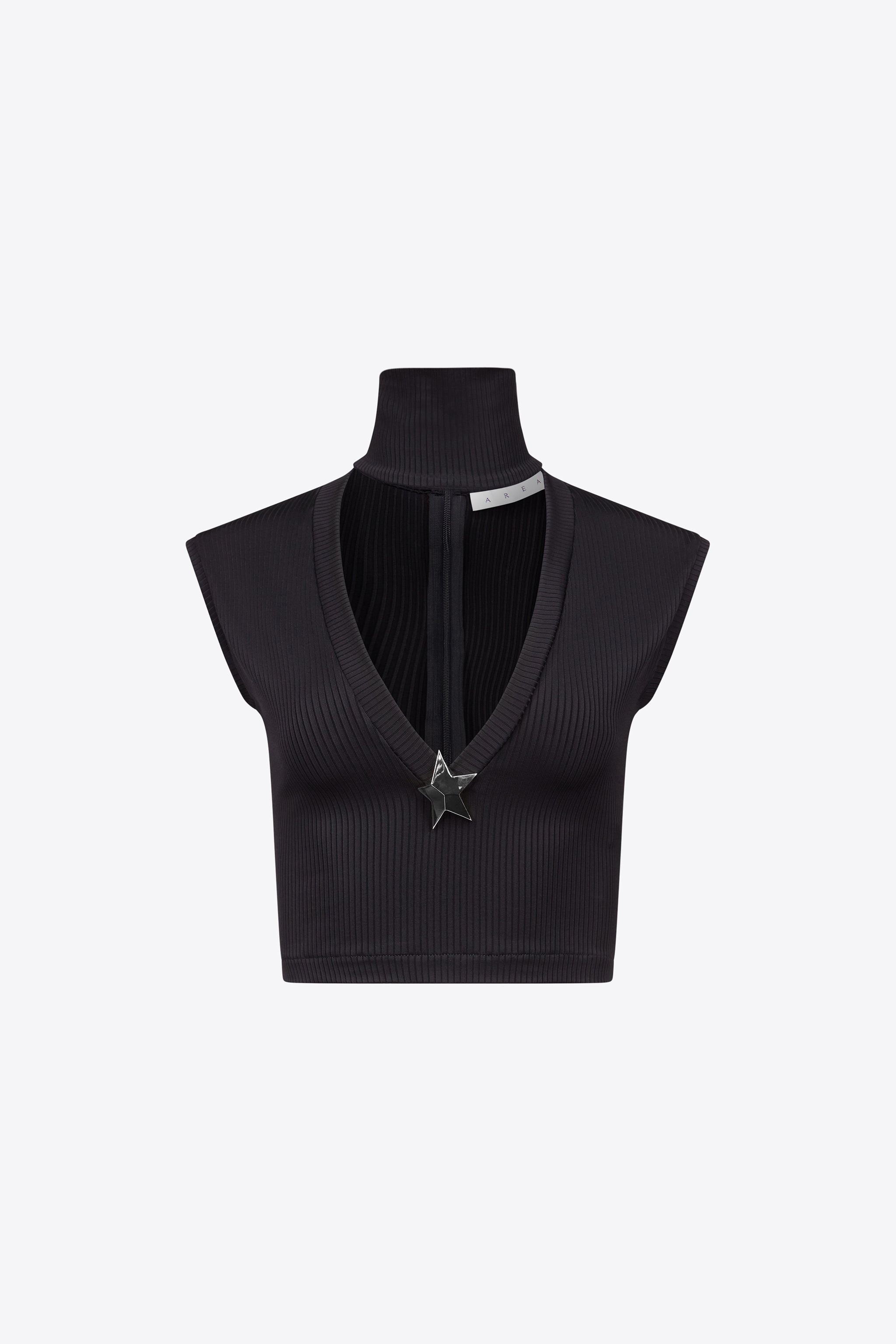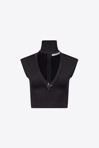 Ribbed sleeveless top featuring star stud embellishment. Available in Black and Cream Yellow. - 97% Viscose, 3% Elastane - Dry Clean Only - Model is 5'11" and wears a size S