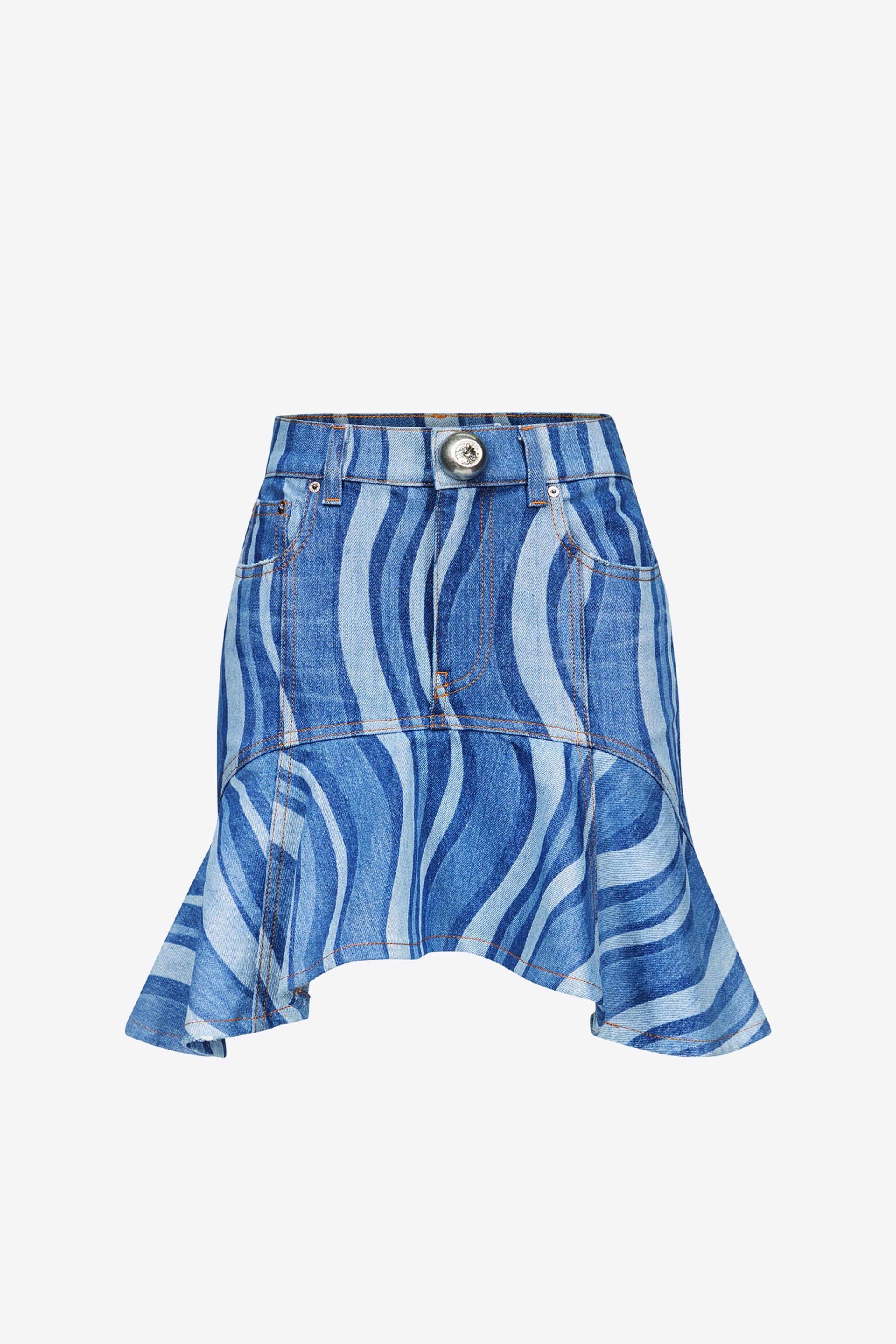 SUNRAY DENIM RUFFLE MINI SKIRT