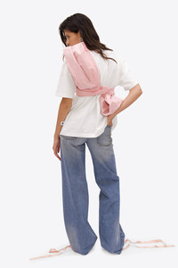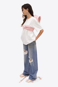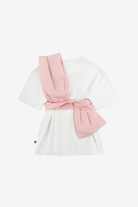 Knit cotton t-shirt featuring a cotton bandeau wrapped around the chest, Available in Washed Black & White. - Made in Italy - 100% Cotton - Dry Clean Only - Model is 5'11" and wears a size S