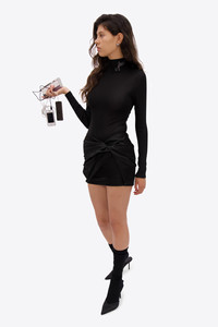 Crepe jersey turtleneck featuring crystal hotfix AREA logo at neck. Available in Black. - Made in Portugal - 100% Viscose - Dry Clean Only - Model is 5'11" and wears a size S