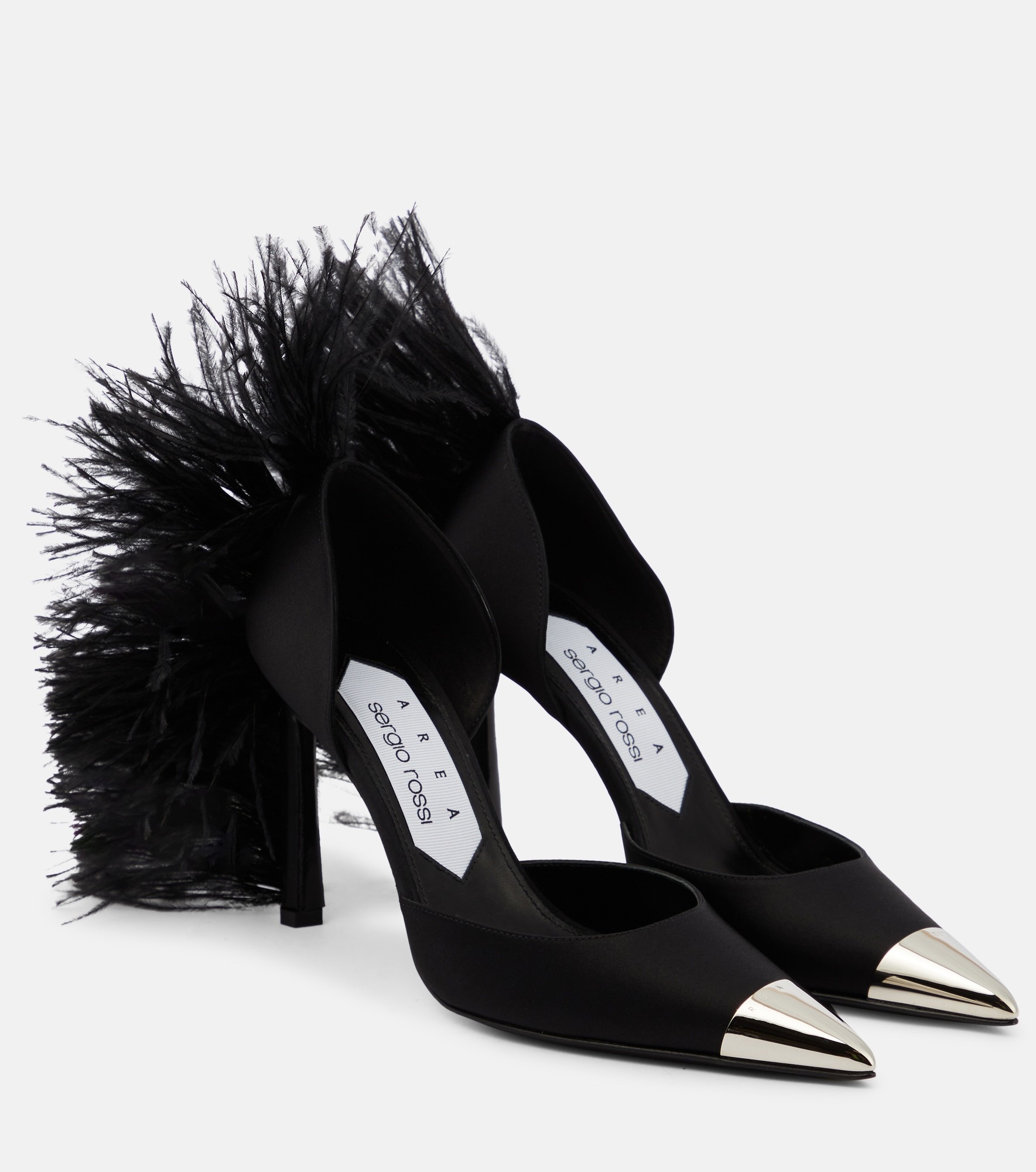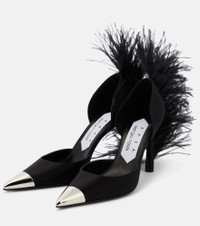Part of the first collaboration between Area and Sergio Rossi, the Amazona pumps are made from denim with opulent feather trims at the back. They feature metal toe caps engraved with subtle logo lettering. Product Details - Lining: leather - Upper: fabric - Sole: leather insole, rubber sole - Trim: feathers - Toe shape: pointed toe - Designer color name: Nero - Comes with a box, Comes with dust bags - Made in Italy - Item number: P00791220 Size & Fit - Fits slightly large to size - we recommend trying a half size smaller - European sizes - 10cm-4" heel (size EU 38)