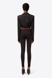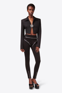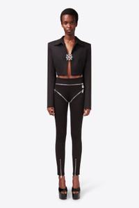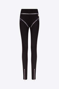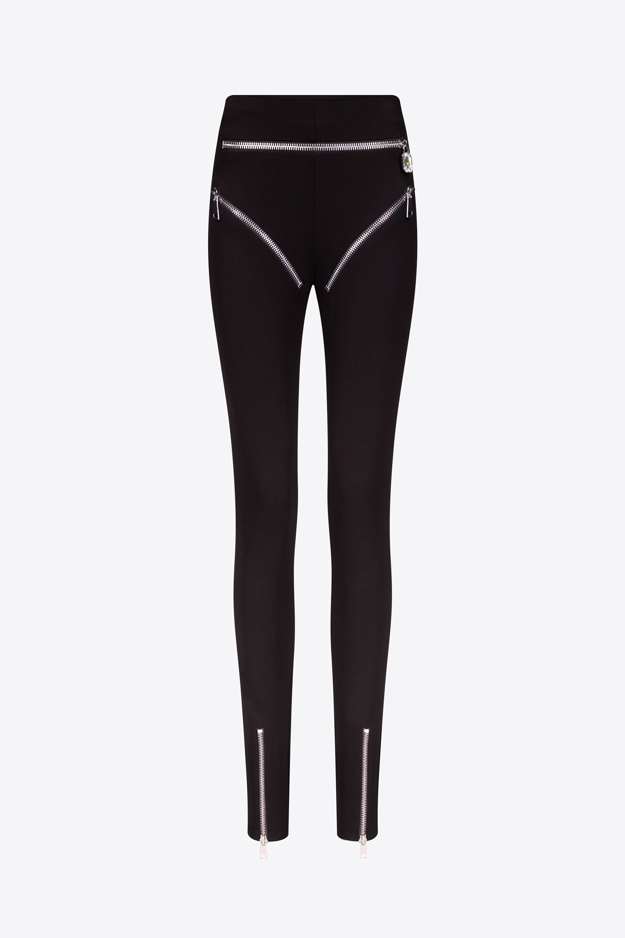 Compact ponte jersey leggings featuring zipper details at waist, thighs and ankles. Available in Black & Carmine. - 67% Rayon, 28% Nylon, 5% Elastane - Dry Clean Only - Model is 5'11" and wears a size S