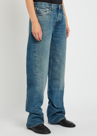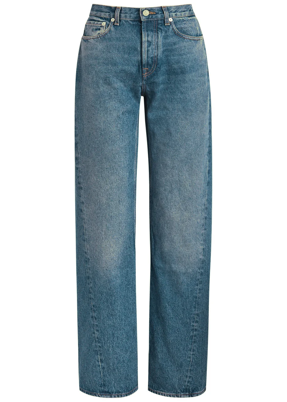Info & Care armarium;denim jeans Mid-rise fit, straight-leg cut, belt loops, five pockets, twisted seams, whiskered, faded finish Partially concealed;button fastening at front 100% cotton Machine wash inside out to avoid colour transfer Size & Fit Front rise: 10 inches/ 25.5cm Inside leg length: 35 inches/ 89cm Midweight Model is 5'9"/ 175cm and wears a size;IT40