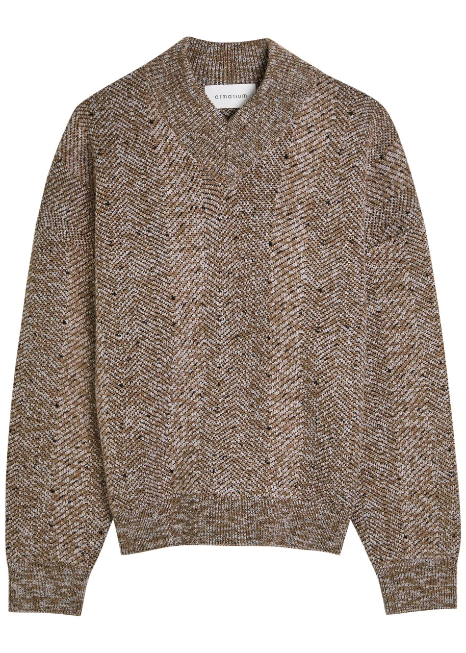 Info & Care Armarium wool-blend jumper Flecked finish, high V-neck, dropped shoulders, rounded sleeves, ribbed trims Slips on 75% virgin wool, 17% cotton, 8% nylon Dry clean Size & Fit Length shoulder to hem: 23 inches/ 58.5cm Midweight Relaxed loose fit Model is 5'9"/ 175cm and wears a size small