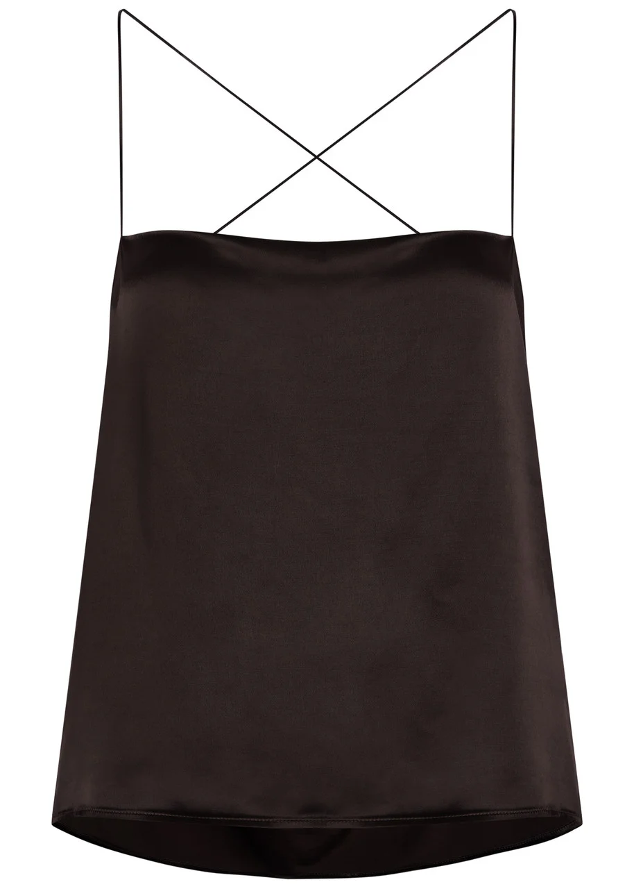 Info & Care armarium satin top Square-neck, cross-over straps at draped back Slips on 100% viscose Dry clean Size & Fit Length shoulder to hem: 24 inches/ 61cm Midweight Loose;fit Model is 5'10"/ 178cm and wears a size;IT40