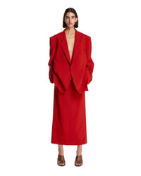 Armarium Red Loren Skirt. Red virgin wool blend, concealed front closure, belt loops, back pleats, side slash pockets, two back welt pockets, straight hem. Anna is 178 cm and she is wearing size 38. DETAILS Model: ARMTMSK03W020023 Composition: 95% Virgin Wool, 4% Elastane, 1% Polyamide Made in: ITALY Season: FW25-26