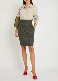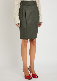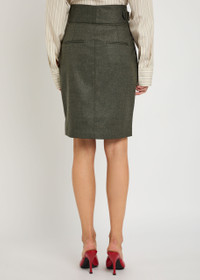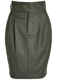 Info & Care armarium wool skirt Belt loop, buckle-fastening wrap-round waist tab, side slip pockets,;pleats at front, back slit pockets; Concealed hook, button and zip fastening at front 100% virgin wool Dry clean Size & Fit Length waist to hem: 23 inches/ 58.5cm Midweight Slim waist, tailored style Model is 5'9"/ 175cm and wears a size small