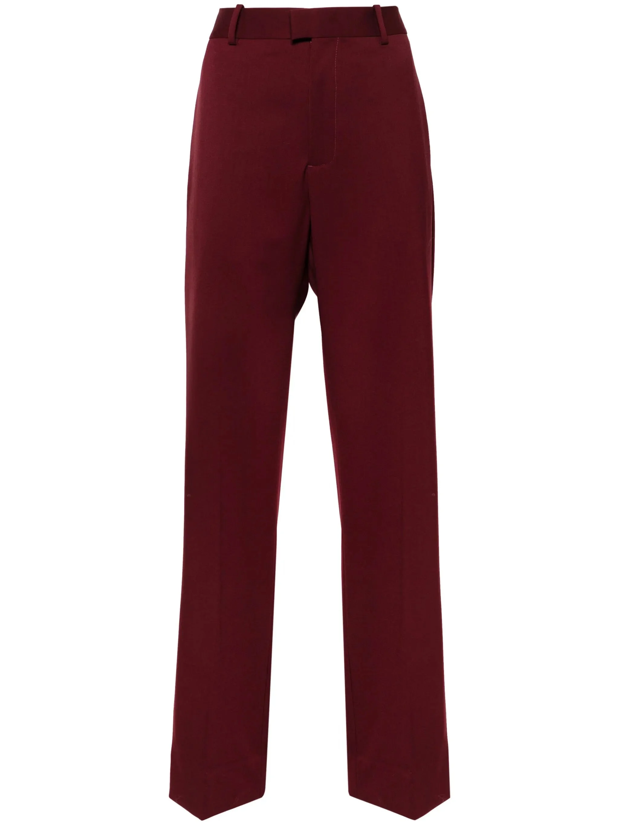 red october virgin wool blend interlock weave concealed front button, hook and zip fastening high-rise belt loops two side inset pockets pressed crease dart detailing two rear jetted pockets straight leg - Color: RED - Made in: Italy - Designer Style ID: P022W014 TITO 014 Composition and care Spandex/elastane: 2.0%, Virgin Wool: 98.0%