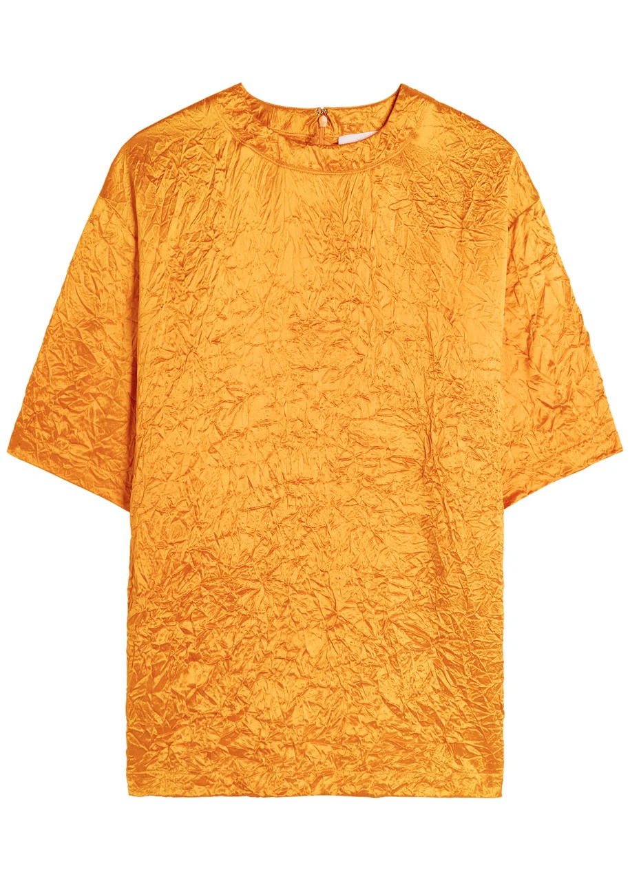 Info & Care armarium satin T-shirt Crew-neck, dropped shoulders, crinkled finish Concealed zip fastening at back 100% viscose Dry clean Coordinating items available Size & Fit Length shoulder to hem: 27 inches/ 68.5cm Midweight Relaxed fit Model is 5'9"/ 175cm and wears a size;IT40