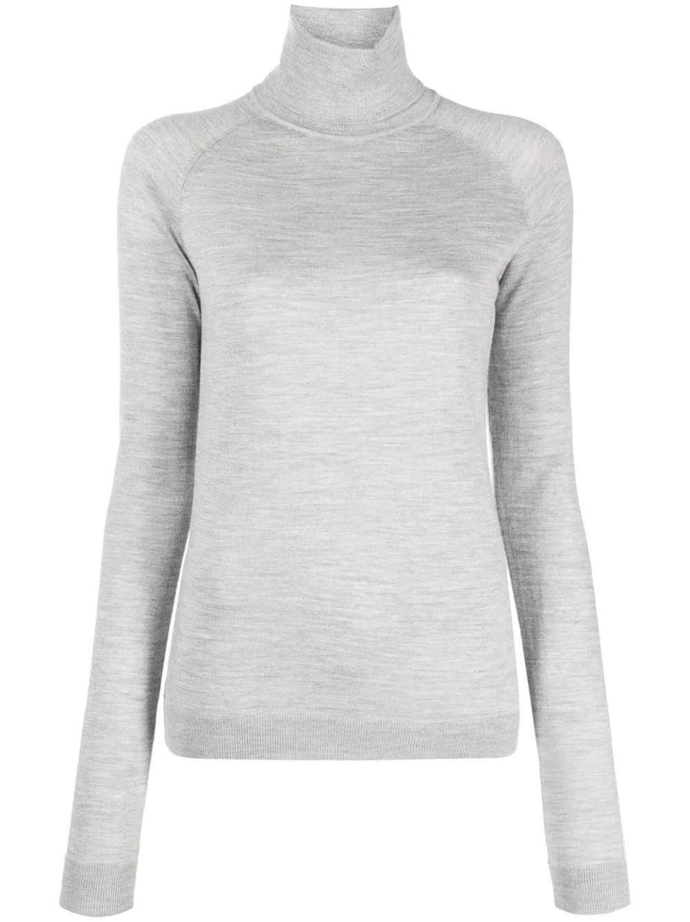 roll-neck fine-knit jumper Highlights - Light grey - Virgin wool blend - Fine knit - Roll neck - Long sleeves - Straight hem Made in Italy Composition Virgin Wool 70%, Silk 20%, Cashmere 10% SIZE & FIT Model measurements Height 5 ft 11 in(1.8 m) Bust/Chest 33.07 in(84 cm) Hips 37.4 in(95 cm) Waist 25.19 in(64 cm) FittingInformation Designed for a slim fit that sits just away from the body offering a close yet comfortable fit Made with a midweight knit, this piece offers some stretch This piece fits true to size – take your usual size Washing instructions Dry Clean Only