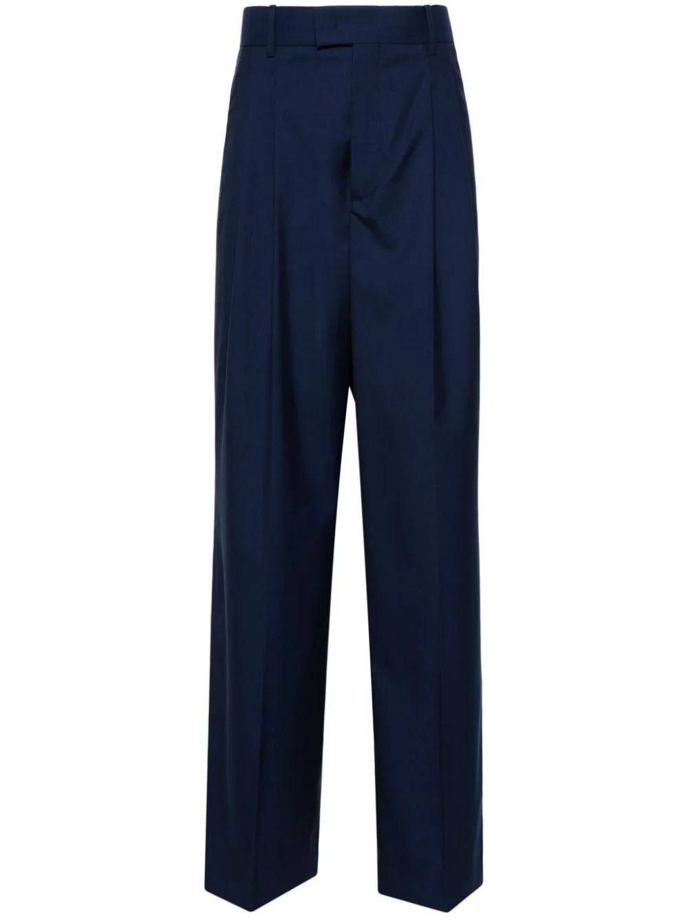 Giorgia tailored wool trousers Highlights - Navy blue - Wool - High-waisted - Belt loops - Two side slit pockets - Pleat detailing - Two rear welt pockets - Wide leg - Concealed front button, hook and zip fastening Made in Italy Composition Wool 100% SIZE & FIT Model measurements Height 5 ft 11 in(1.8 m) Bust/Chest 30.7 in(78 cm) Hips 35.03 in(89 cm) Waist 24.4 in(62 cm) FittingInformation Designed with a wide-leg cut, these trousers allow for a close fit at the waist and offer a loose and roomy fit over the leg Made from a midweight non-stretch fabric This piece fits true to size – take your usual size