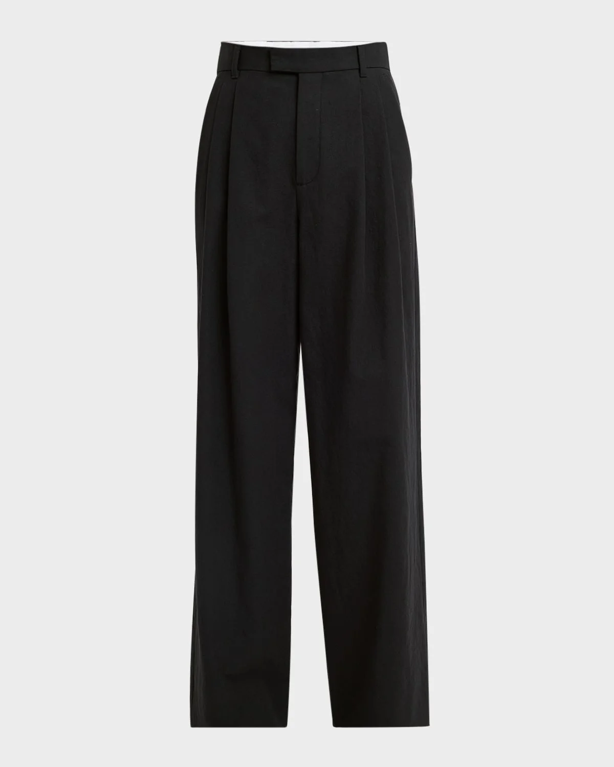 Giorgina Double-Pleated Wide-Leg Cotton-Linen Pants