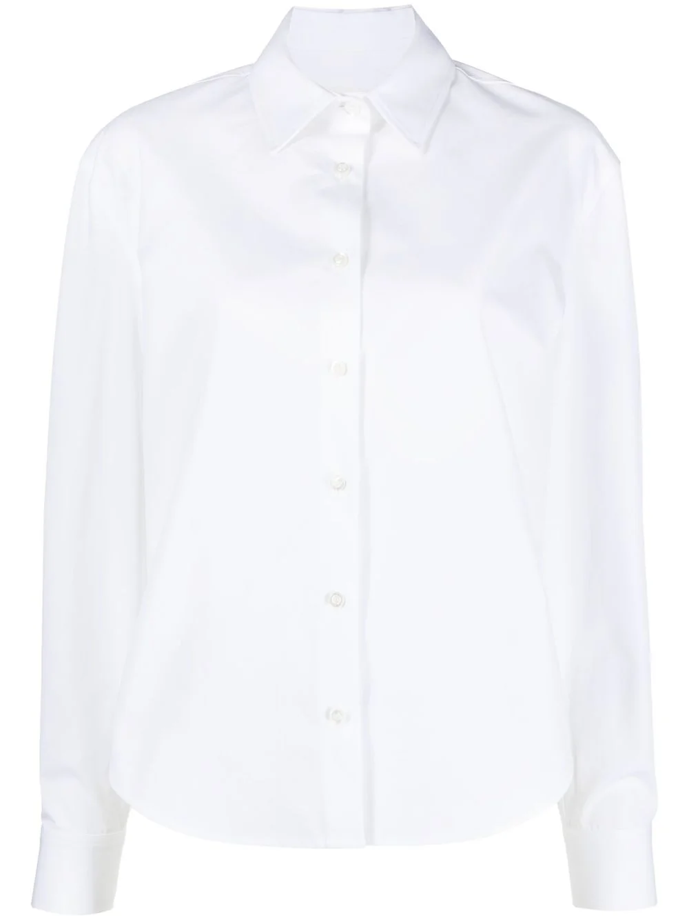 long-sleeve cotton shirt Highlights - White - Cotton - Classic collar - Front button fastening - Long sleeves - Buttoned cuffs - Curved hem Made In Italy Composition Cotton 100% SIZE & FIT Model measurements Height 5 ft 11 in(1.8 m) Bust/Chest 31.49 in(80 cm) Hips 35.43 in(90 cm) Waist 24.4 in(62 cm) FittingInformation Designed for a boxy fit, intended for a loose fit throughout Made from a midweight non-stretch fabric This piece fits true to size – take your usual size Washing instructions Hand Wash
