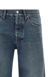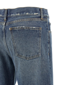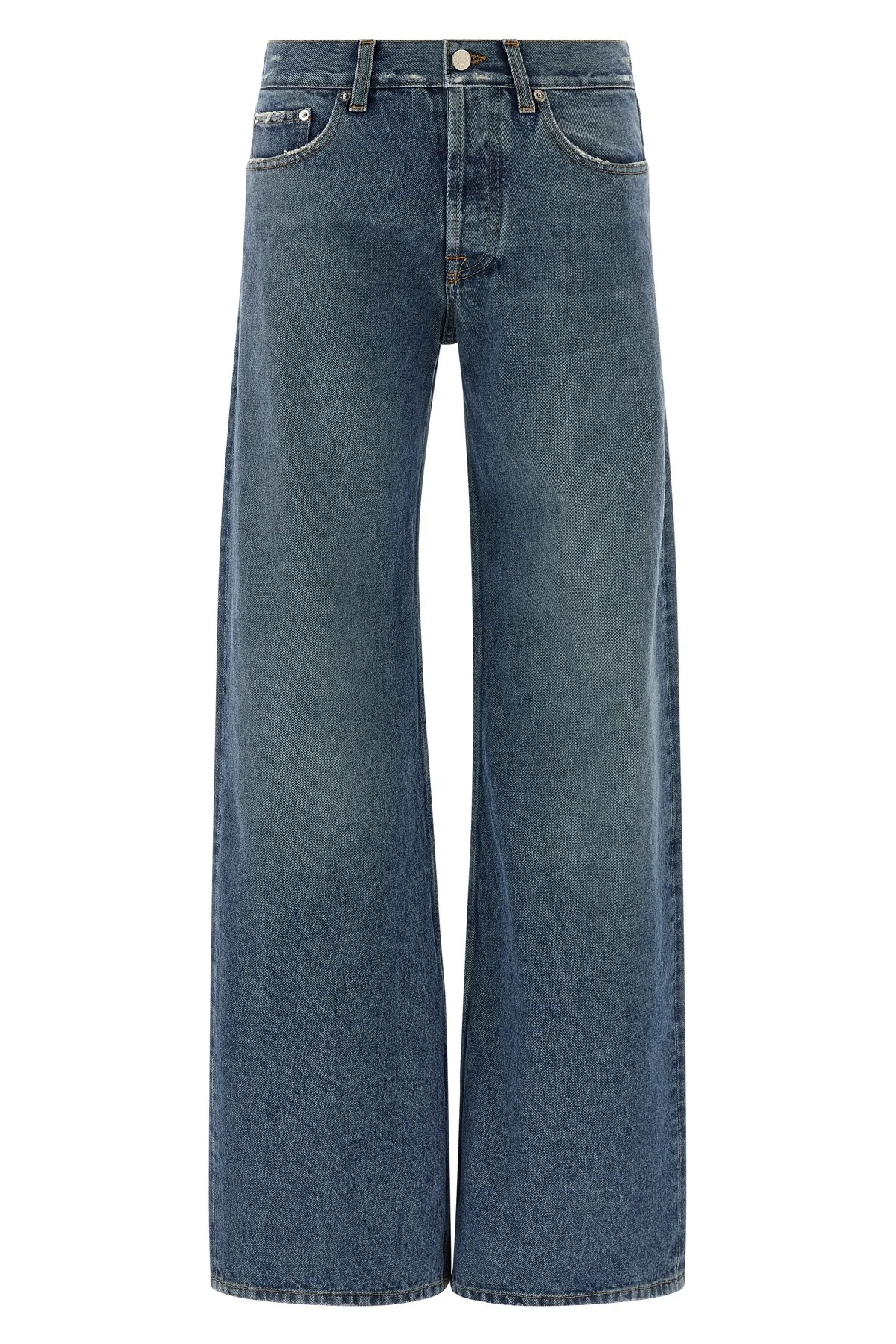 cod. ARMTMP015DE01018DARKBLUE 'Luke' jeans in used-effect washed cotton denim with low waist, wide straight leg, front button closure, five pockets. Color: Blue Size & Fit: true to size fit Composition: 100% cotton Made in: Portugal