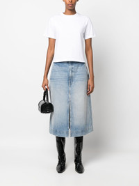 short-sleeved cotton cropped T-shirt Highlights - Optical white - Cotton - Crew neck - Short sleeves - Cropped - Straight hem Made in Italy Composition Cotton 100% SIZE & FIT Model measurements Height 5 ft 11 in(1.8 m) Bust/Chest 31.49 in(80 cm) Hips 36.61 in(93 cm) Waist 24.4 in(62 cm) FittingInformation Designed to be unstructured, offering a loose fit throughout Made from a midweight non-stretch fabric, this piece offers minimal elasticity when worn Washing instructions Hand Wash