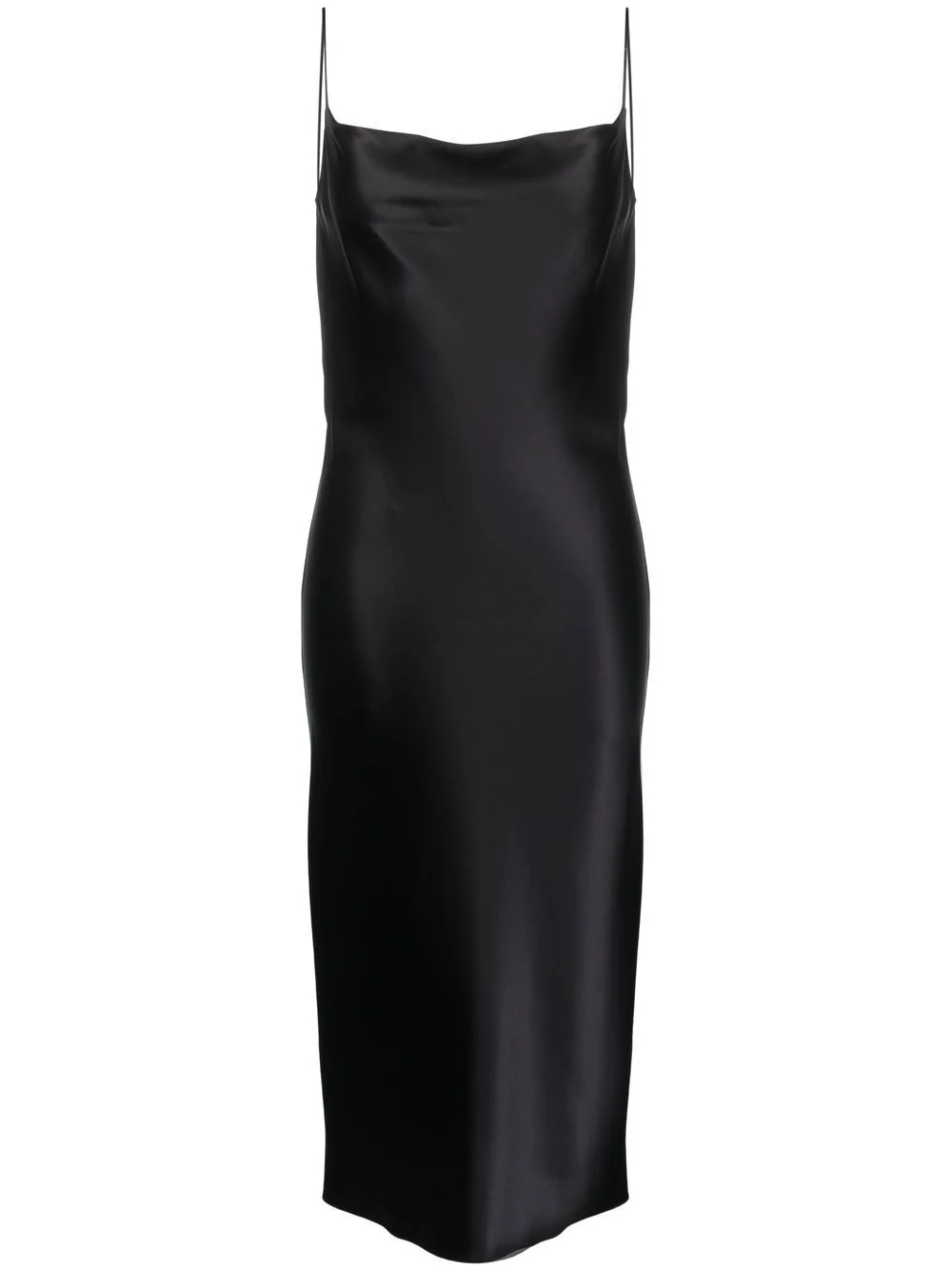 spaghetti strap dress black silk spaghetti straps long length Made in Italy Composition Silk 96%, Elastane 4% SIZE & FIT Model measurements Height 5 ft 11 in(1.8 m) Bust/Chest 31.49 in(80 cm) Hips 36.22 in(92 cm) Waist 25.59 in(65 cm) FittingInformation This piece fits true to size. We recommend you get your regular size Cut for a slim fit Made with a mid-weight stretch fabric Washing instructions Dry Clean Only