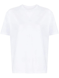 round-neck cotton T-shirt Highlights - White - Cotton - Crew neck - Short sleeves - Straight hem Made in Italy Composition Cotton 100% SIZE & FIT Model measurements Height 5 ft 11 in(1.8 m) Bust/Chest 31.49 in(80 cm) Hips 36.61 in(93 cm) Waist 24.4 in(62 cm) FittingInformation Designed to be unstructured, offering a loose fit throughout Made from a midweight non-stretch fabric, this piece offers minimal elasticity when worn This piece fits true to size – take your usual size