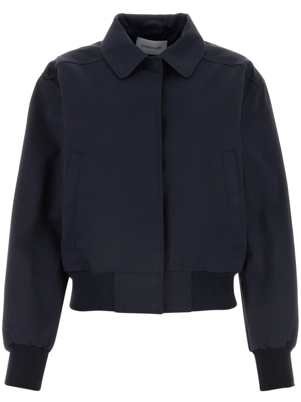 waterproof cotton jacket Highlights - Navy blue - Cotton - Waterproof - Concealed front fastening - Classic collar - Long sleeves - Two side welt pockets - Ribbed cuffs and hem Made in Italy Composition Lining: Cupro 100% Outer: Cotton 100% Washing instructions Dry Clean Only