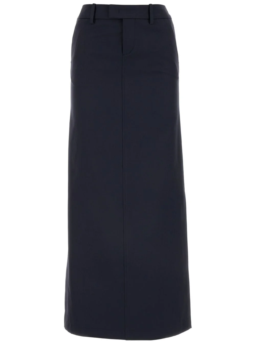 wool pencil skirt Highlights - Midnight blue - Concealed front fastening - High-waisted - Belt loops - Two side slit pockets - Side slits - Straight hem - Maxi Imported Composition Fabric 100% Washing instructions Read Manufacturer Guidelines