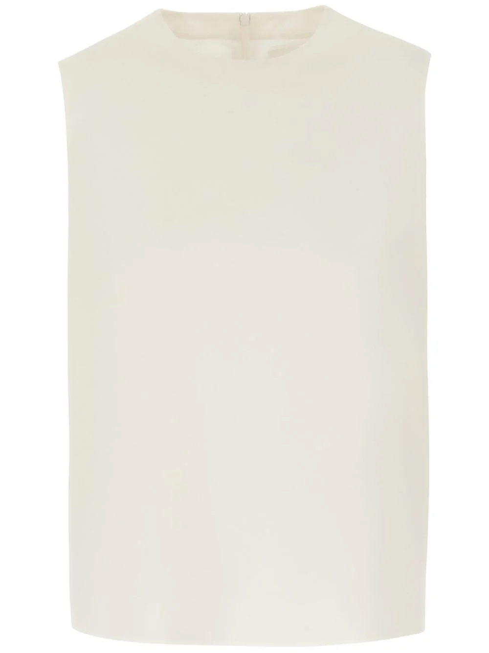 wool top Highlights - Light beige - Virgin wool - Concealed rear zip fastening - Round neck - Sleeveless - Straight hem Made in Italy Composition Lining: Cotton 100% Outer: Virgin Wool 100% Washing instructions Read Manufacturer Guidelines