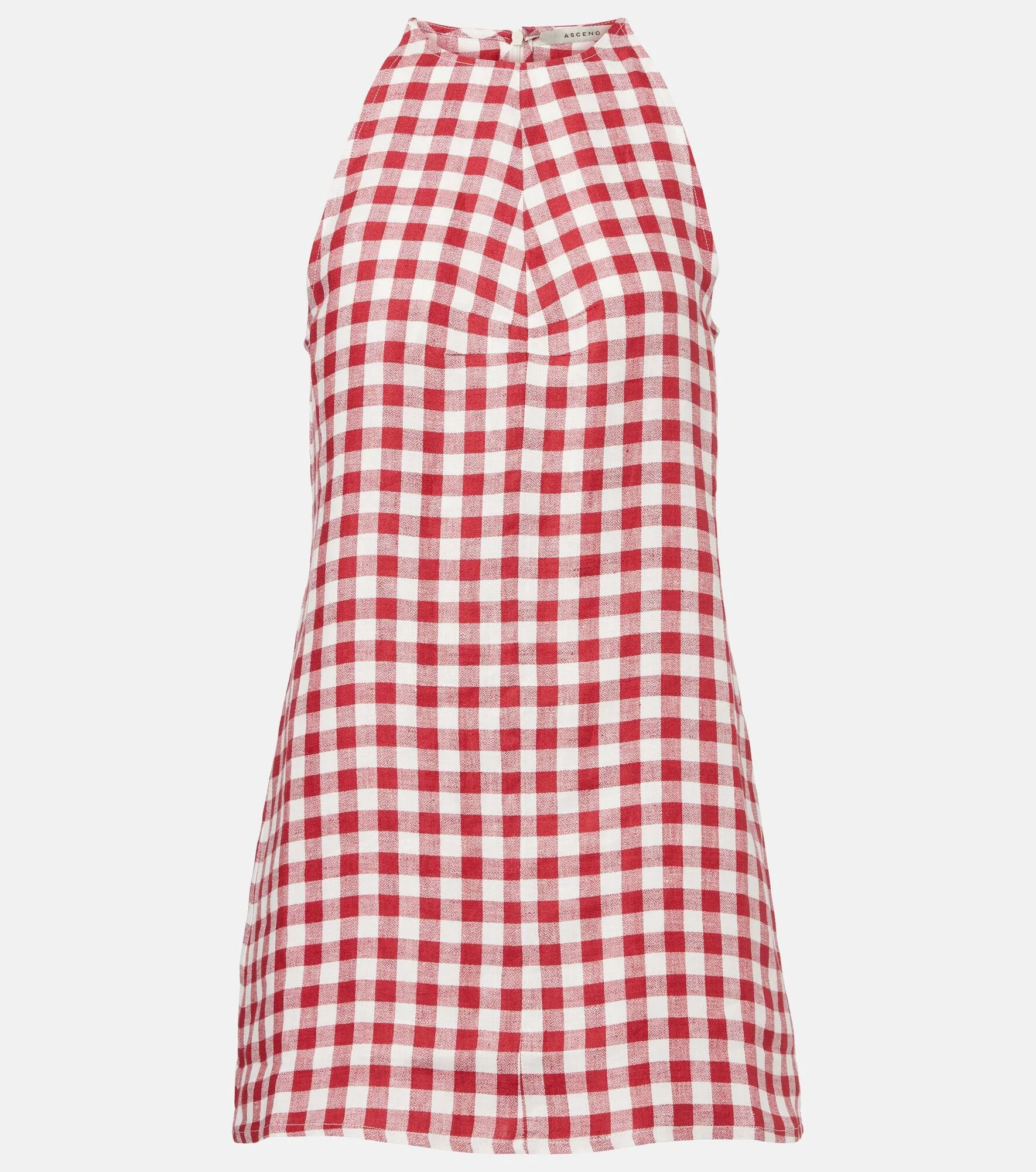Inspired by a '90s retro aesthetic, the Antigua mini dress by Asceno is cut to an A-line, halterneck silhouette and made from red and beige gingham-checked linen, which is responsibly sourced and comes from controlled organic cultivation. Product Details - Material: 100% linen - Care instructions: machine wash at 30 degrees - Made in Portugal - Designer color name: Red Ecru Check - Item color: red, white - Closure: invisible zipper - Item number: P01041542 Size & Fit - True to size - Cinched waist - Non-stretchy fabric - The model seen in the picture is 178cm-5'10" and wearing a size XS