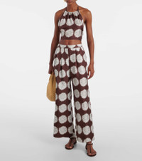 These Isola wide-leg pants by Asceno are a refined take on relaxed dressing. Crafted from pure silk twill, this piece features a lovely sunflower print, mid-rise waist, and discreet pockets. Product Details - Material: 100% silk - Care instructions: hand wash - Made in China - Designer color name: Sunflower Mahogany - Item color: brown, white - Pockets: side slit pockets - Elasticated waistband - Item number: P01073860 Size & Fit - True to size - Elasticated waist - Non-stretchy fabric - Wide-leg - The model seen in the picture is 178cm-5'10" and wearing a size XS