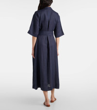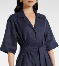 Product Details - Material: 100% linen - Care instructions: machine wash at 30 degrees - Made in Portugal - Designer color name: Ocean Navy - Detachable band - Pockets: side slit pockets - Closure: buttoned front - Item number: P01033180 Size & Fit - True to size - Dropped shoulders - Loose fit, comes with belt - Non-stretchy fabric - The model seen in the picture is 178cm-5'10" and wearing a size XS