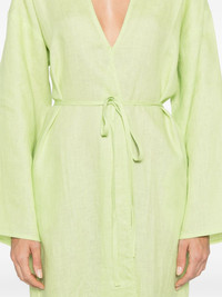 linen coat Highlights - Lime green - Tied waist - V-neck - Long sleeves Imported Composition Linen/Flax 100% SIZE & FIT Model measurements Height 5 ft 10 in(1.79 m) Bust/Chest 33.07 in(84 cm) Hips 35.82 in(91 cm) Waist 24.01 in(61 cm) FittingInformation Designed to be unstructured, offering a loose fit throughout The tie fastening gives an adaptable and personalised fit Made from a lightweight non-stretch fabric