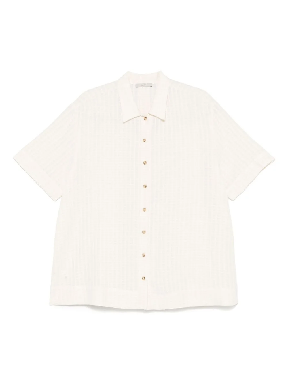 Montauk shirt Highlights - Light beige - Front button fastening - Vertical stripe pattern - Classic collar - Short sleeves Imported Composition Cotton 67%, Linen/Flax 33% SIZE & FIT Model measurements Height 5 ft 9 in(1.75 m) Bust/Chest 34.64 in(88 cm) Hips 36.61 in(93 cm) Waist 26.37 in(67 cm) FittingInformation Designed to be unstructured, offering a loose fit throughout Made from a lightweight non-stretch fabric Washing instructions Machine Wash
